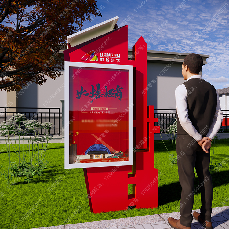 太陽(yáng)能部隊(duì)燈箱異形廣告牌紅色定制宣傳欄雙面發(fā)光開啟式滾動(dòng)箱體